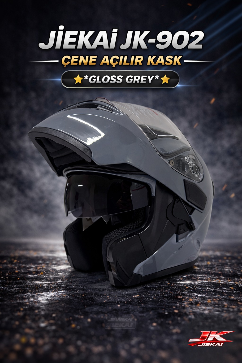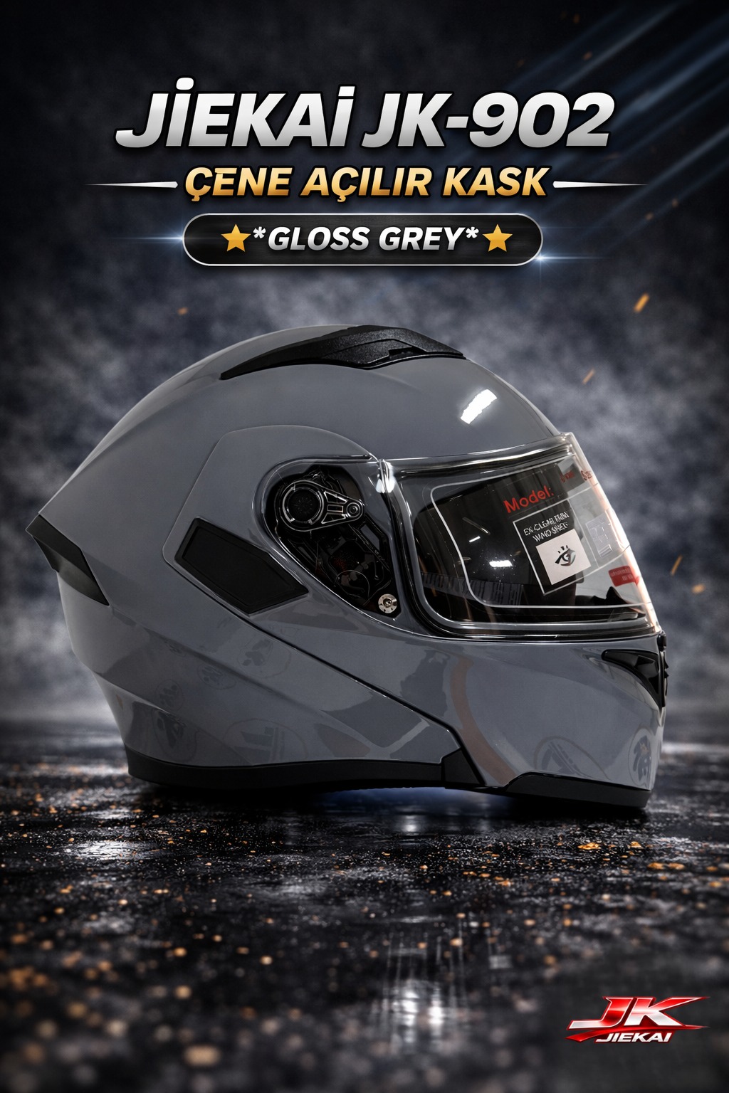 ÇOK YAKINDA STOKLARDA JİEKAİ JK-902 ÇENE AÇILIR KASK * ÇENE PEDLİ * GLOSS GREY