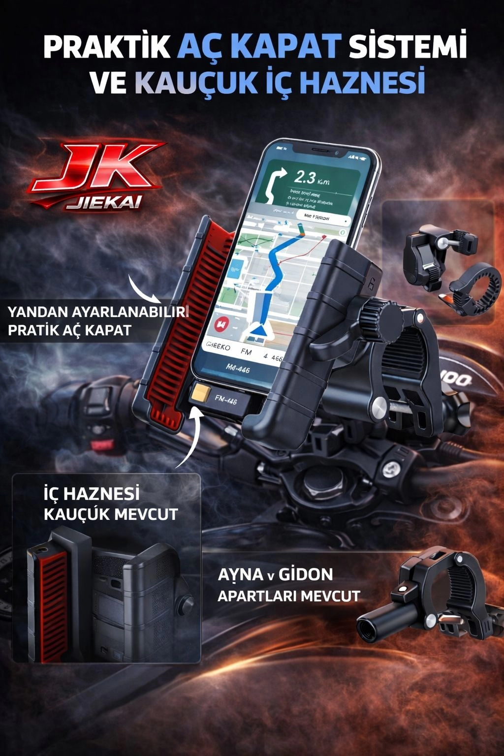 Jiekai FM-44 MOTOSİKLET TELEFON TUTUCU AYNA VE GİDON APARATLI