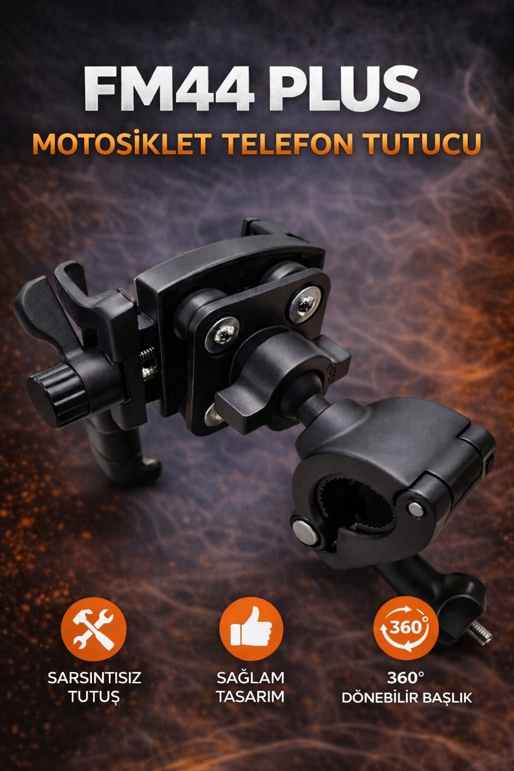 FM-44 PLUS TİTREŞİM MODÜLLÜ MOTOSİKLET TELEFON TUTUCU AYNA VE GİDON APARATLI UNIVERSAL SİYAH