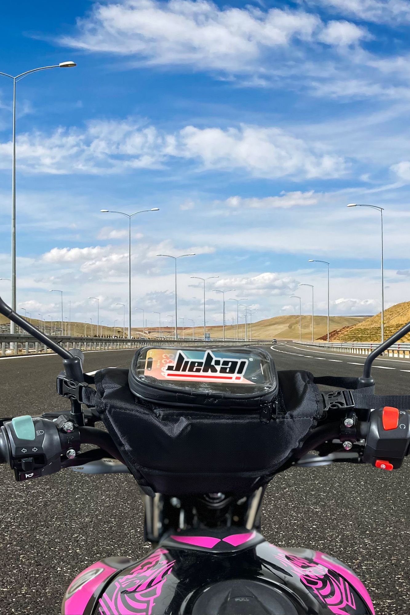 Motosiklet sürüşlerinizi daha konforlu ve düzenli hale getirmek için tasarlanan JİEKAİ Gidon Çantası, geniş iç hacmi ve telefon kılıflı özel bölmesiyle tüm ihtiyaçlarınıza yanıt verir.
