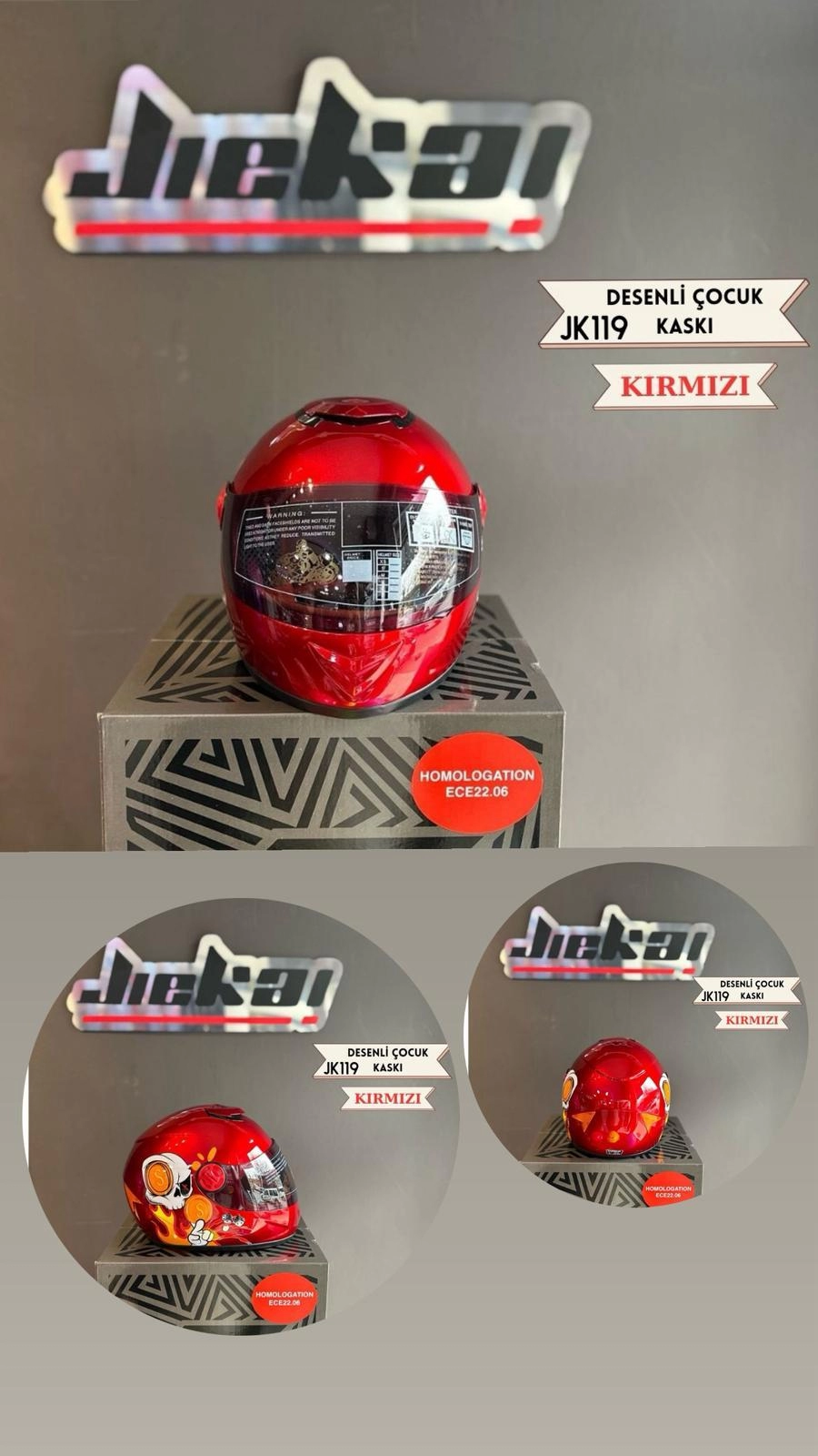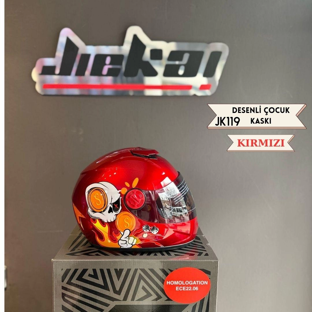 Jiekai İEKAİ JK119 Desenli Çocuk Kaskı Kırmızı Renk Full Face Kask