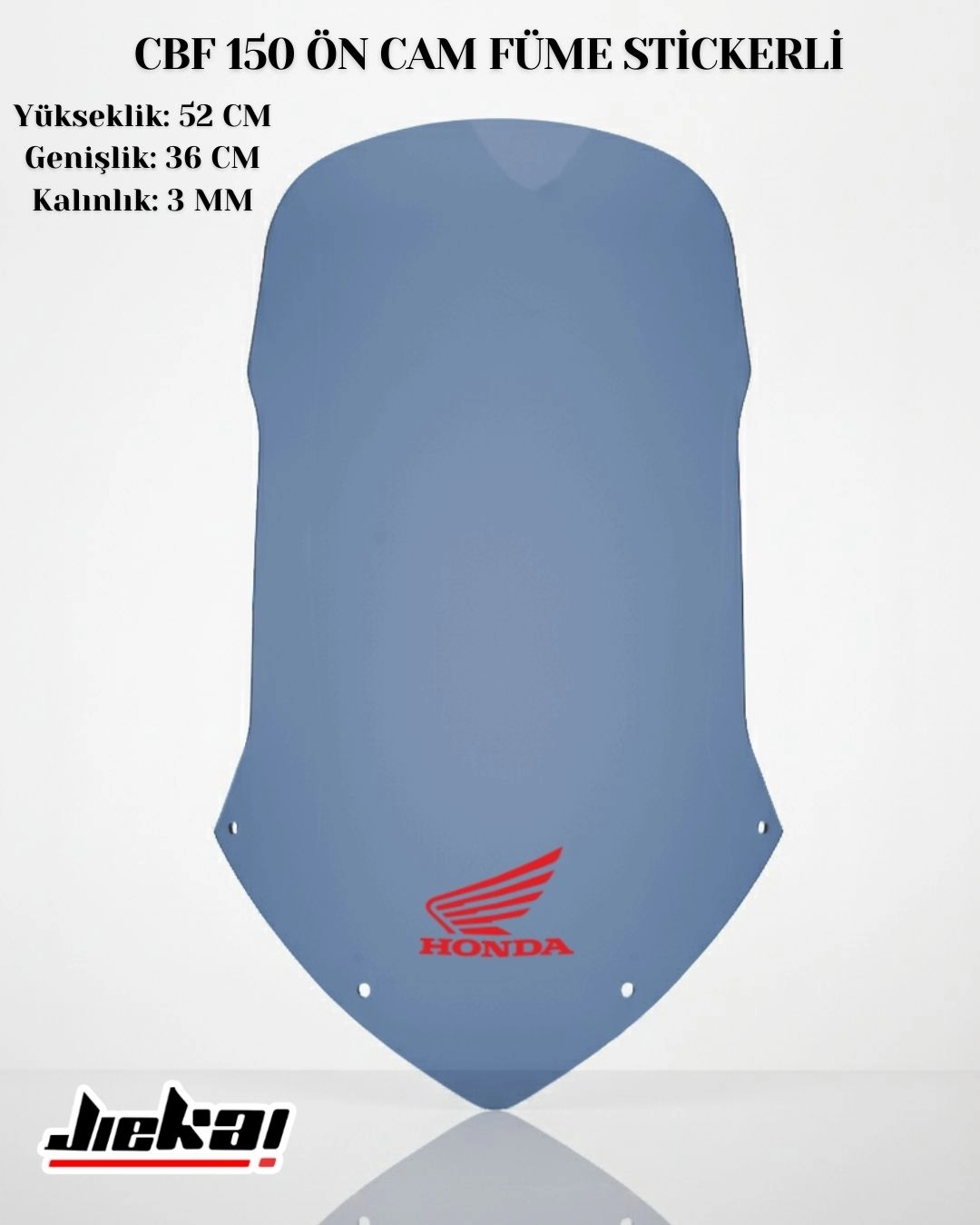 JİEKAİ CBF 150 Ön Cam – Füme, Honda Stickerlı (52x36 cm)
