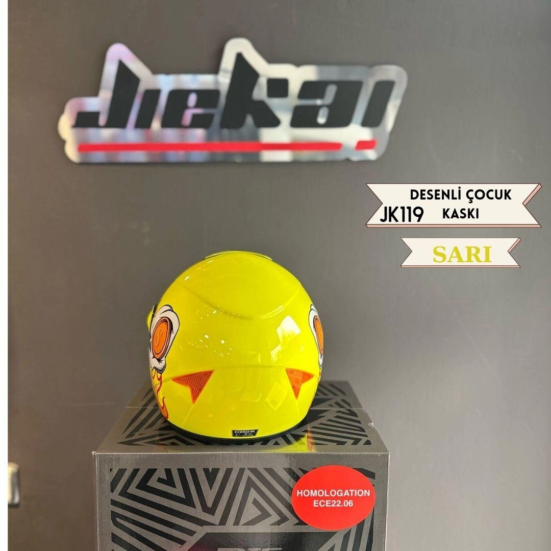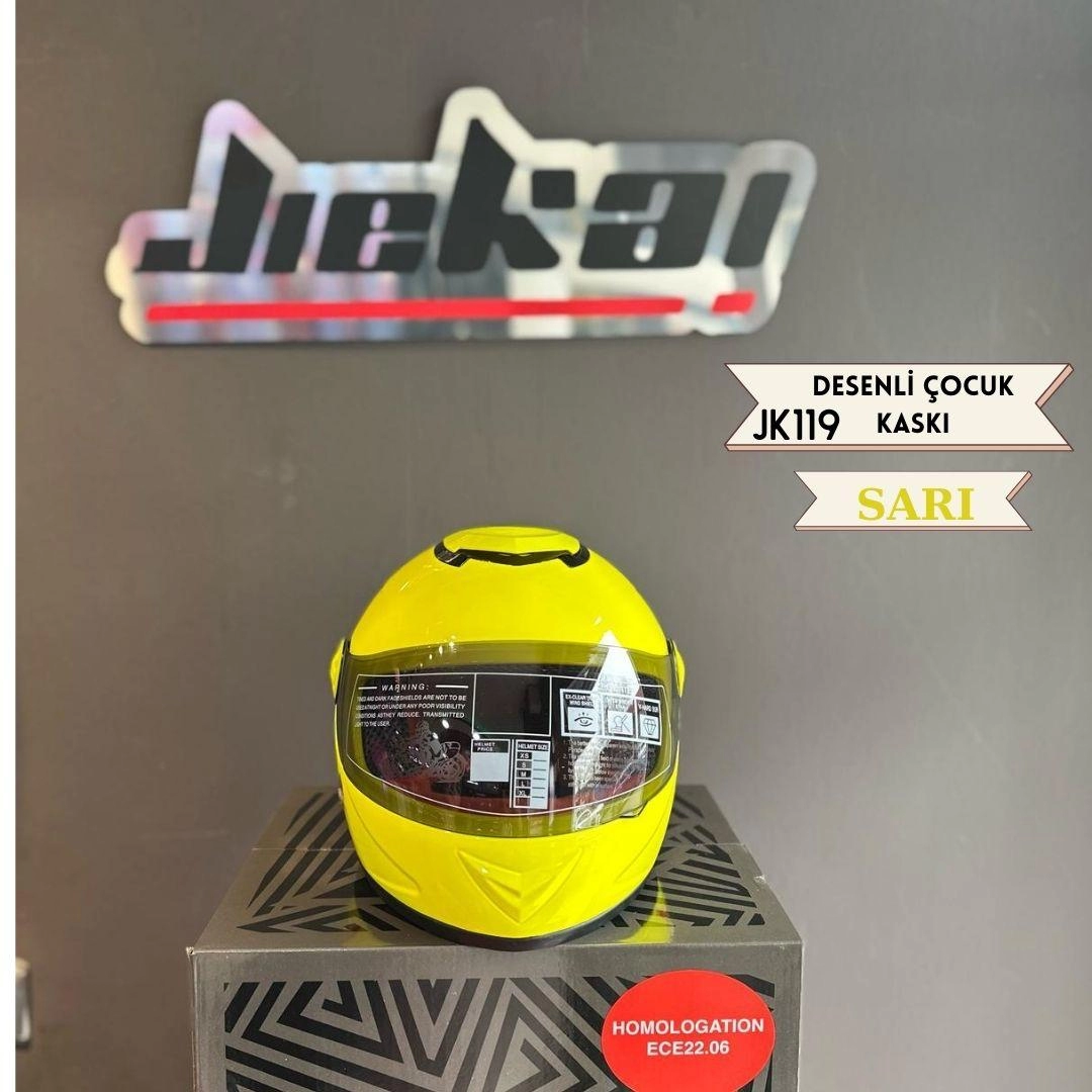 Jiekai JİEKAİ JK119 Desenli Çocuk Kaskı Sarı Renk Full Face Kask