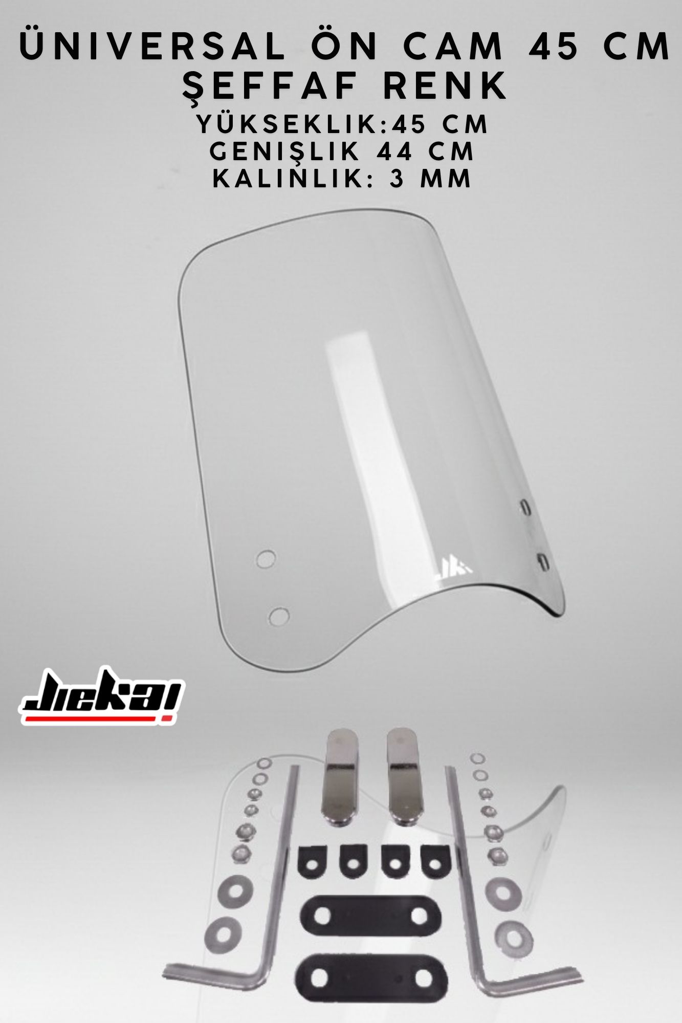 JİEKAİ ÜNİVERSAL SCOOTER ÖN CAM 45 CM – ŞEFFAF