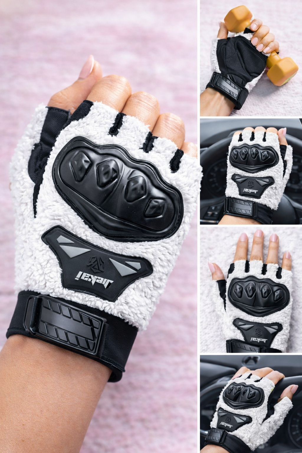 JK Peluşlu Yarım Eldiven – Beyaz Renk