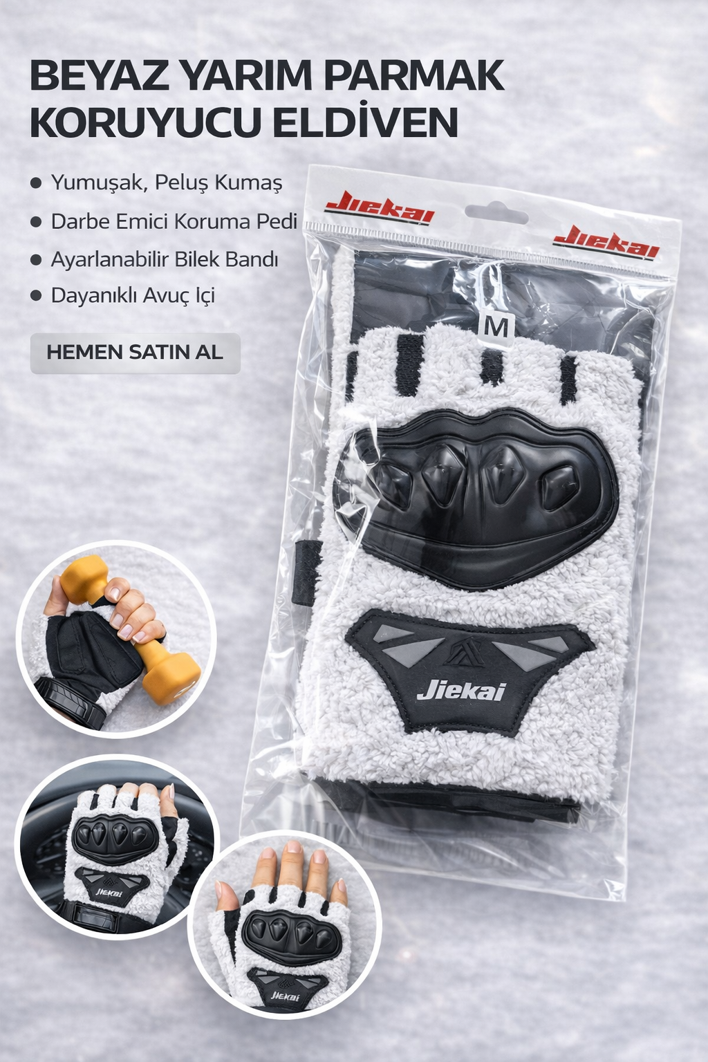 JK PELUŞLU YARIM ELDİVEN KORUMALI BEYAZ RENK