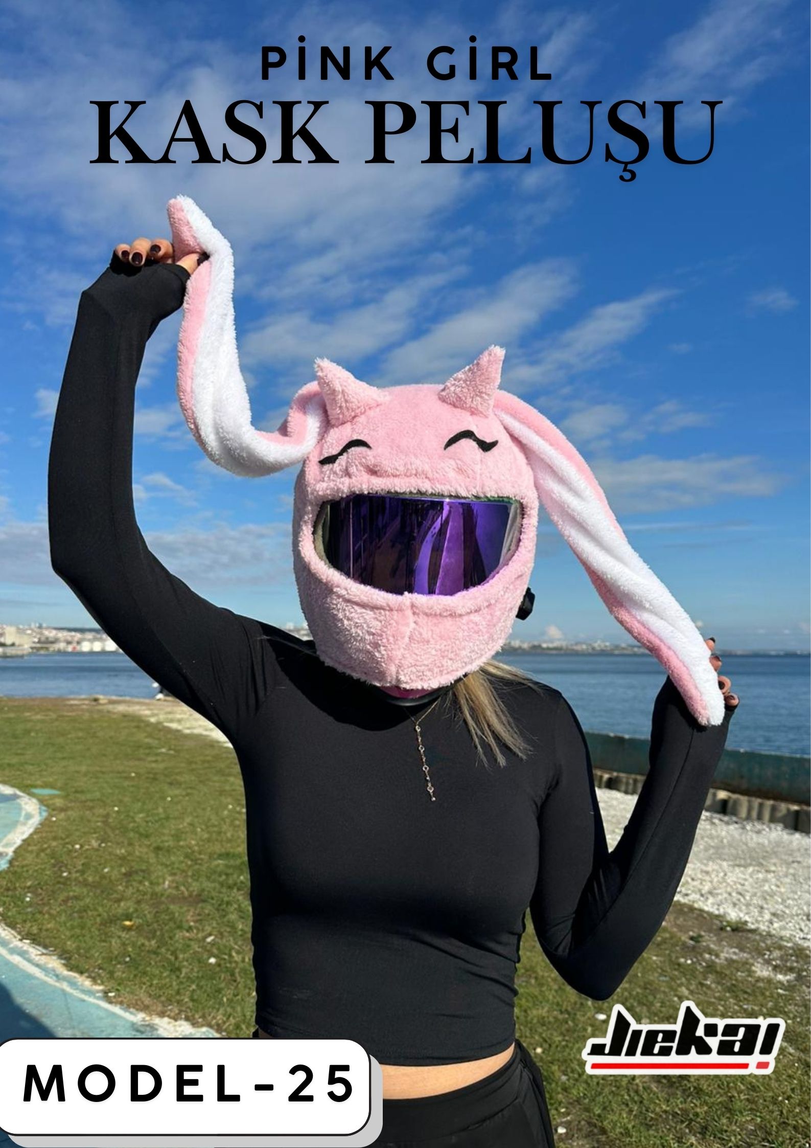 Bu ürün 1 kez satıldı ve 10 kişi baktıJİEKAİ Pink Girl Kask Peluşu – Uzun Kulaklı, Pembeli Beyazlı Yeni Tasarım!