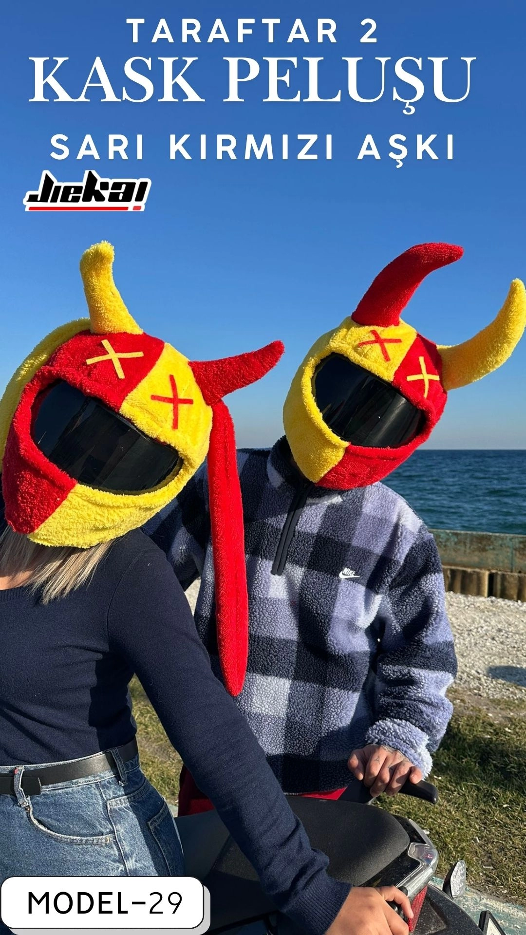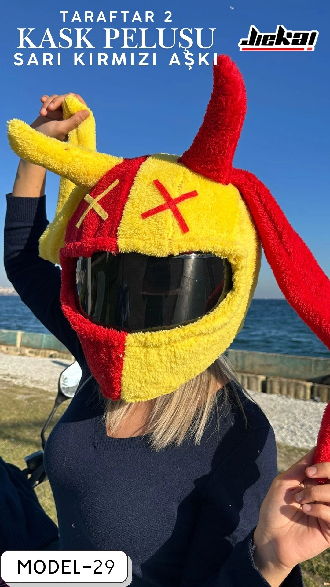 Taraftar-2 Sarı Kırmızı Kask Peluşu, JİEKAİ kalitesiyle üretilmiş, motosiklet aksesuarlarında fark yaratmak isteyen kullanıcılar için ideal bir üründür
