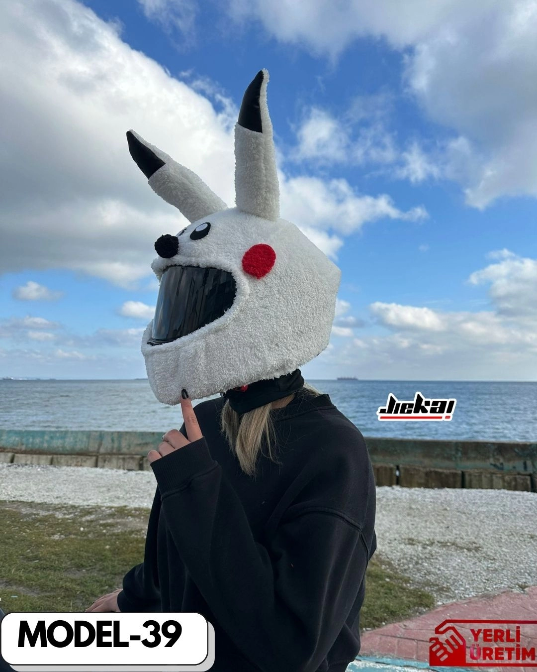 Jiekai MODEL-39 KASK PELUŞU TEK EBAT WHİTE PİKACHU