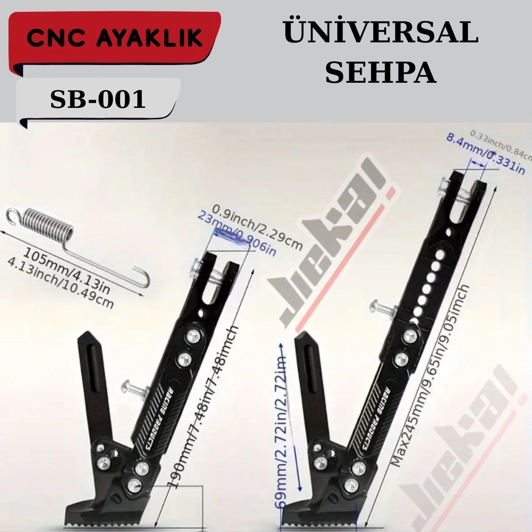 Motosikletinizin yan sehpasının zemine daha sağlam basmasını sağlayan JİEKAİ SB-001 CNC yan sehpa ayaklık, özellikle yumuşak zemin, toprak ve sıcak asfalt gibi yüzeylerde sehpanın batmasını önlemeye yardımcı olur. Dayanıklı CNC işlenmiş alüminyum yapısı sayesinde uzun ömürlü kullanım sunarken motosikletinize şık ve sportif bir görünüm kazandırır. Üniversal tasarımı sayesinde birçok motosiklet modeli ile uyumludur ve kolay montaj imkanı sağlar.